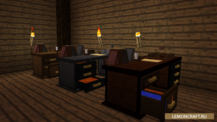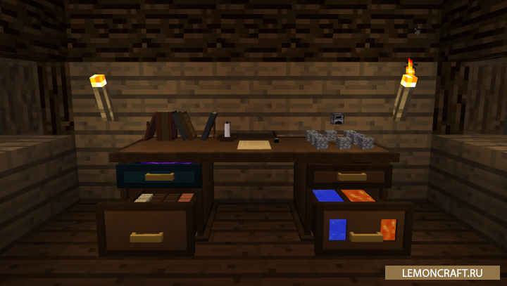 Мод Bagelsmore: The Return добавит в игру настоящий рабочий стол, имеющий много тумбочек и шуфляток для хранения различных вещей. Всего будет добавлено 3 вида столов, которые позволят вам сэкономить место разложив в них нужные вам вещи. В данные столы встроена печь и верстак, а так же, с их помощью, можно уничтожать ненужные вещи.